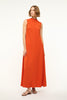 Crafted in silk dupioni, the Este Dress is a one-shoulder, sleeveless maxi gown with flattering draping at the bodice.