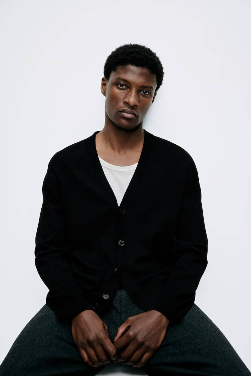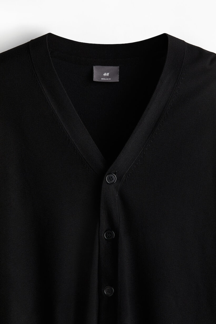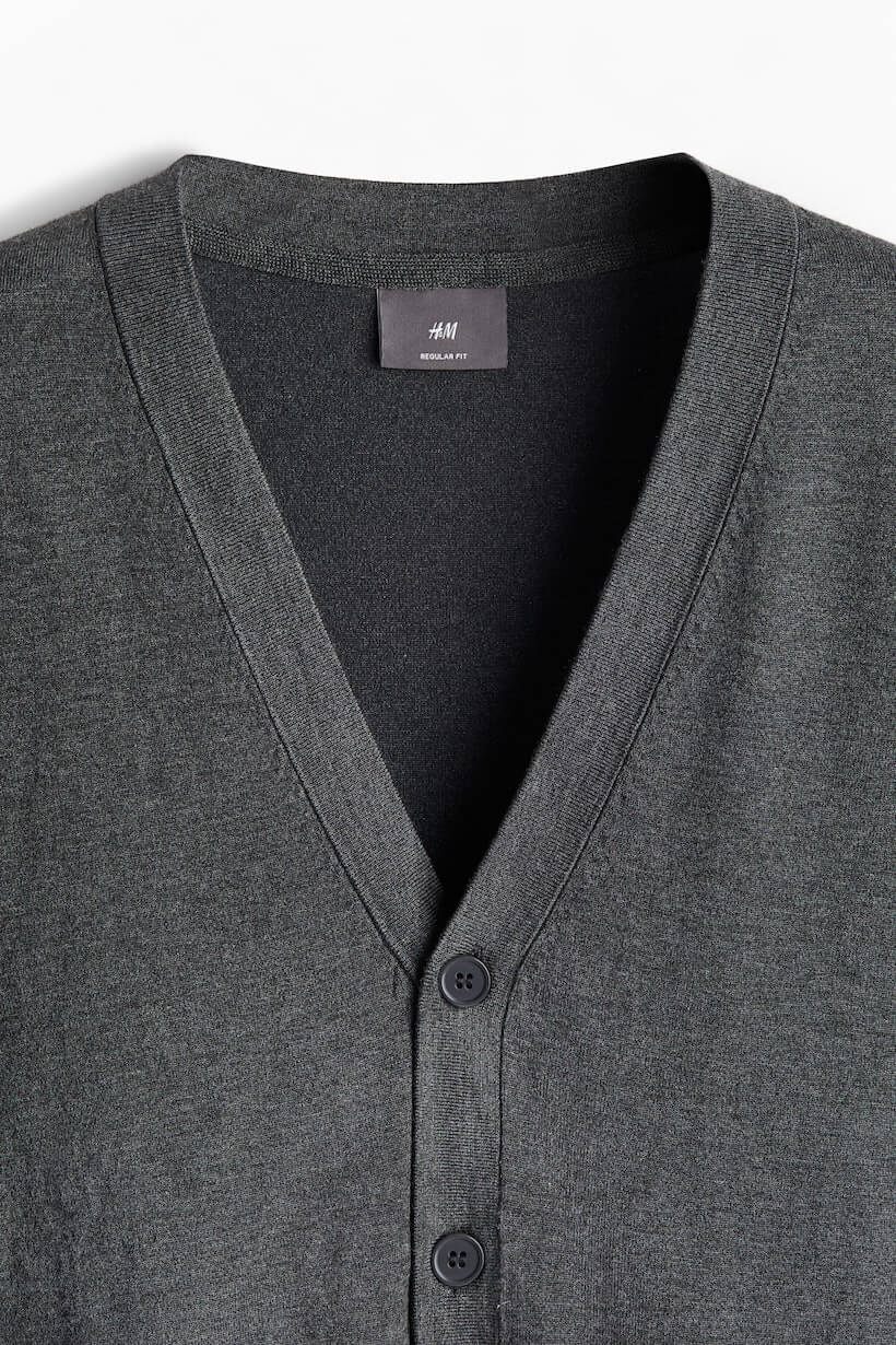 Regular-fit, fine-knit cardigan in a soft viscose blend with a comfortable, classic silhouette. V-neck, buttons at front, and long sleeves. Ribbing at neck, cuffs, and hem.
