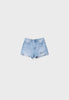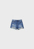 Shorts with five pockets, high waistband, frayed hem, zipper and front buttons.