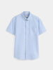 A wardrobe must-have. A short-sleeved version of our Jasper shirt. Made with Oxford cloth, a basket-weave fabric that is soft, sturdy, and breathable. 100% organic cotton. Regular fit. Buttoned point collar. Patch pocket at the chest. Recycled buttons.